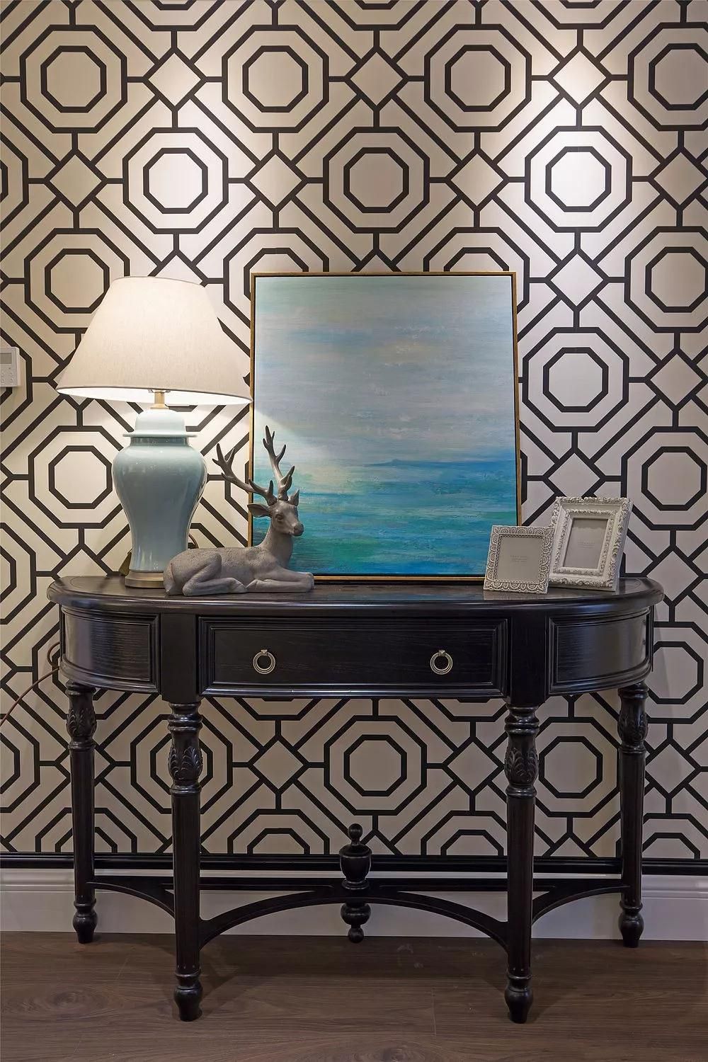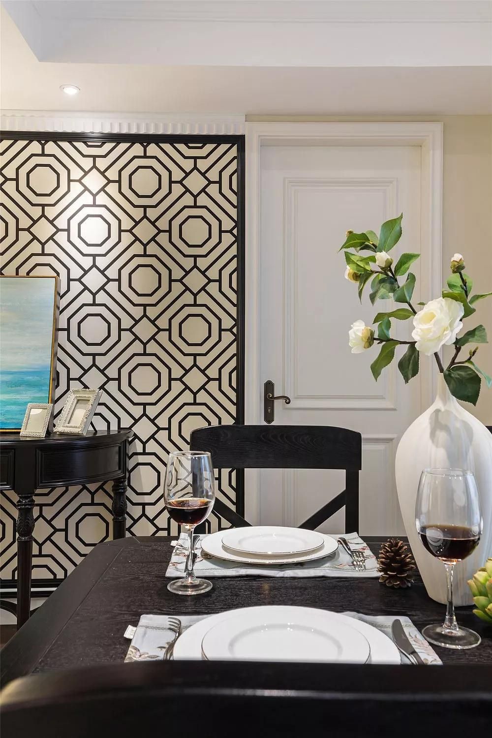 玄關(guān)處的背景墻設(shè)計(jì)營(yíng)造濃濃的美式氛圍,與餐廳景致相互映襯,浪漫而有情調(diào)。