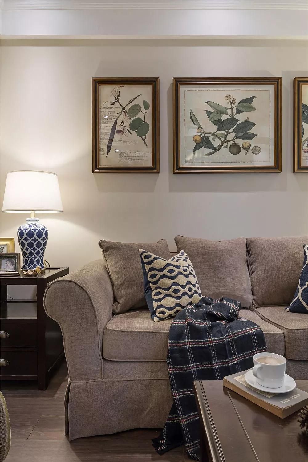 棉麻感的布藝沙發(fā)加入藍(lán)白元素的抱枕和小毯子,溫暖而舒適。