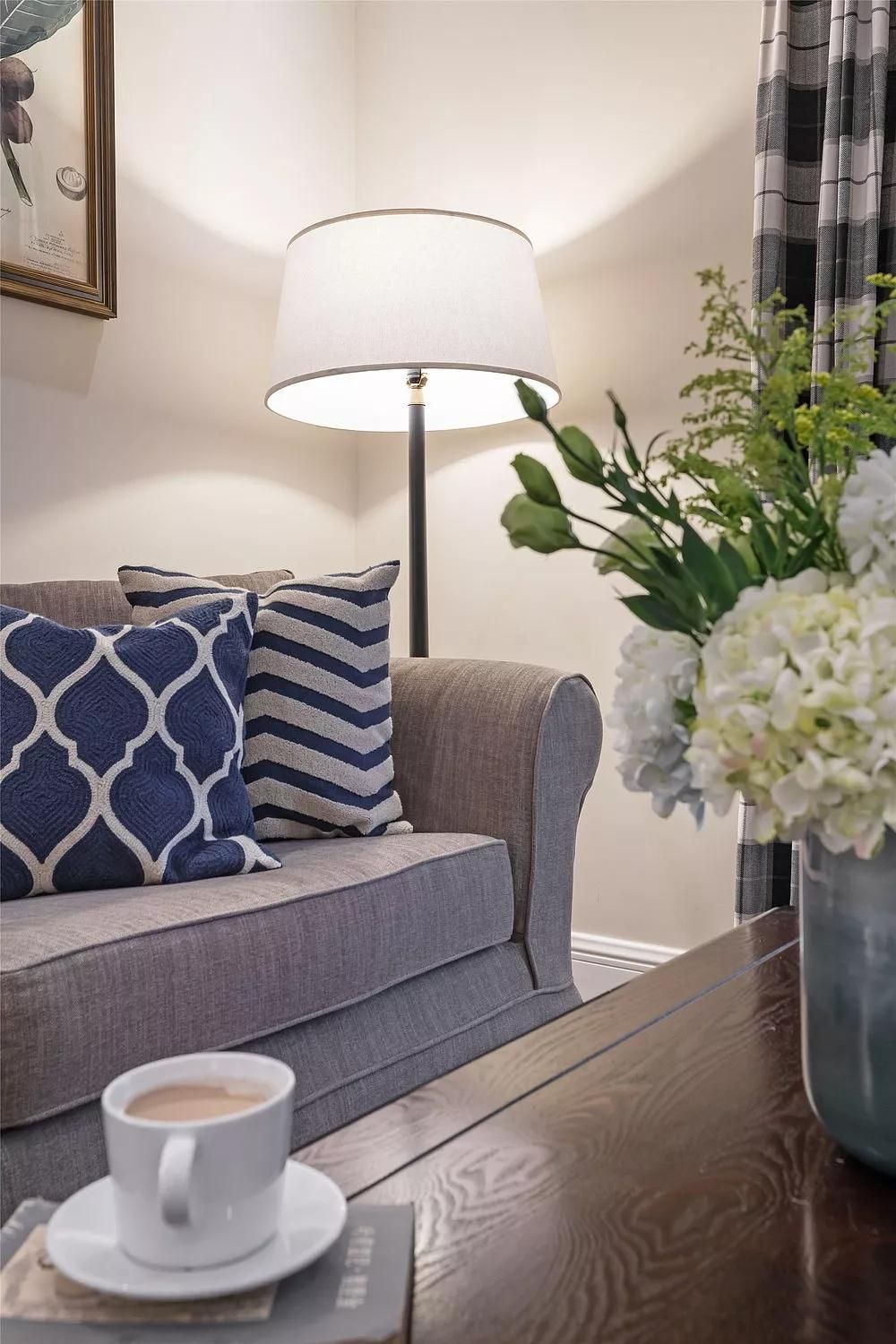 沙發(fā)一側(cè)的角落里設(shè)置一盞簡(jiǎn)約落地?zé)?,營(yíng)造出放松而有格調(diào)的氛圍。