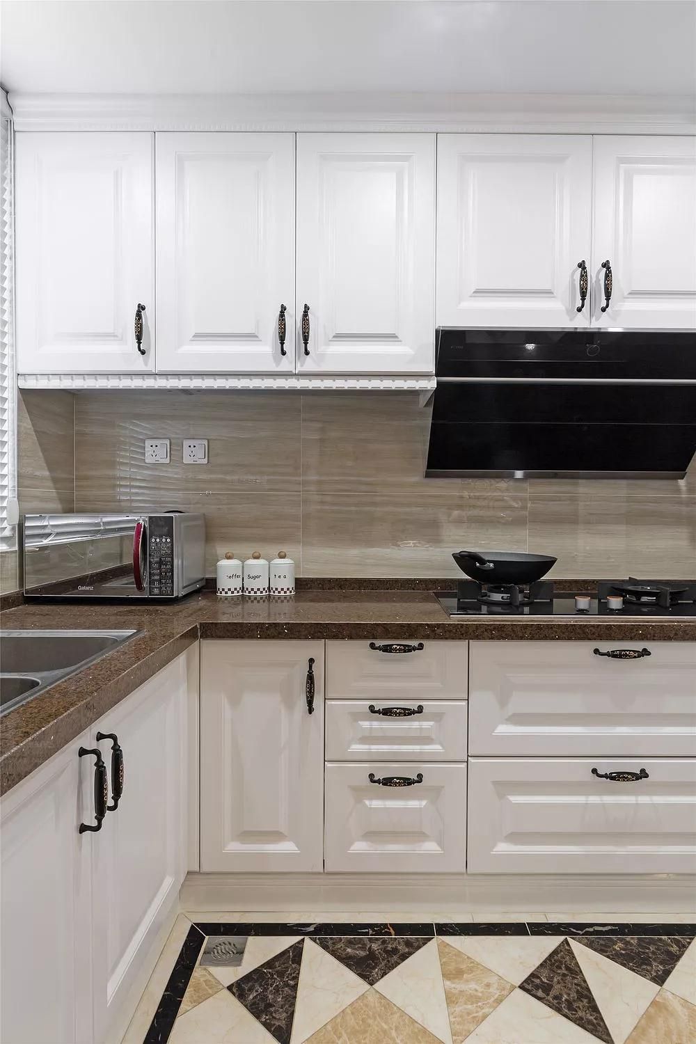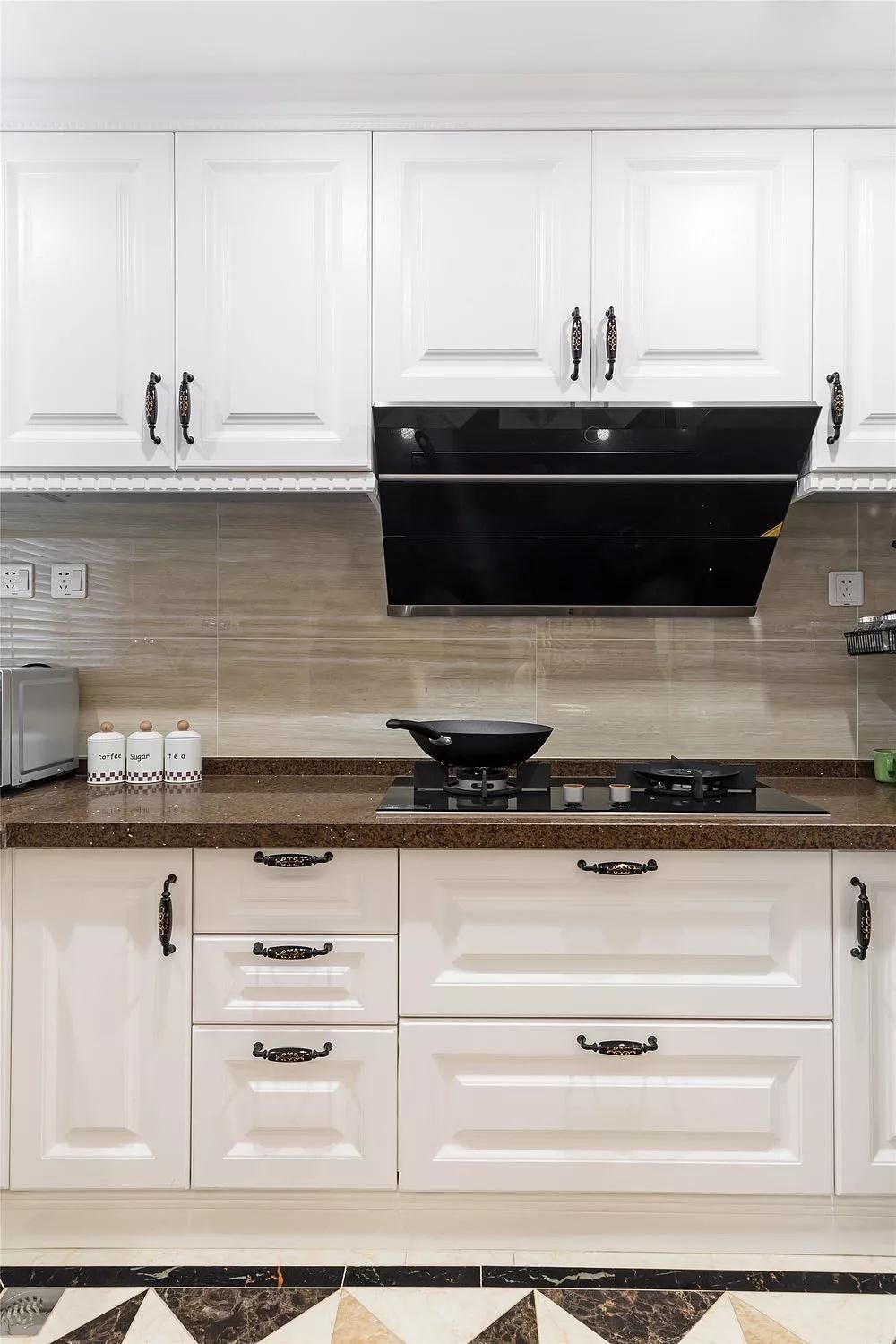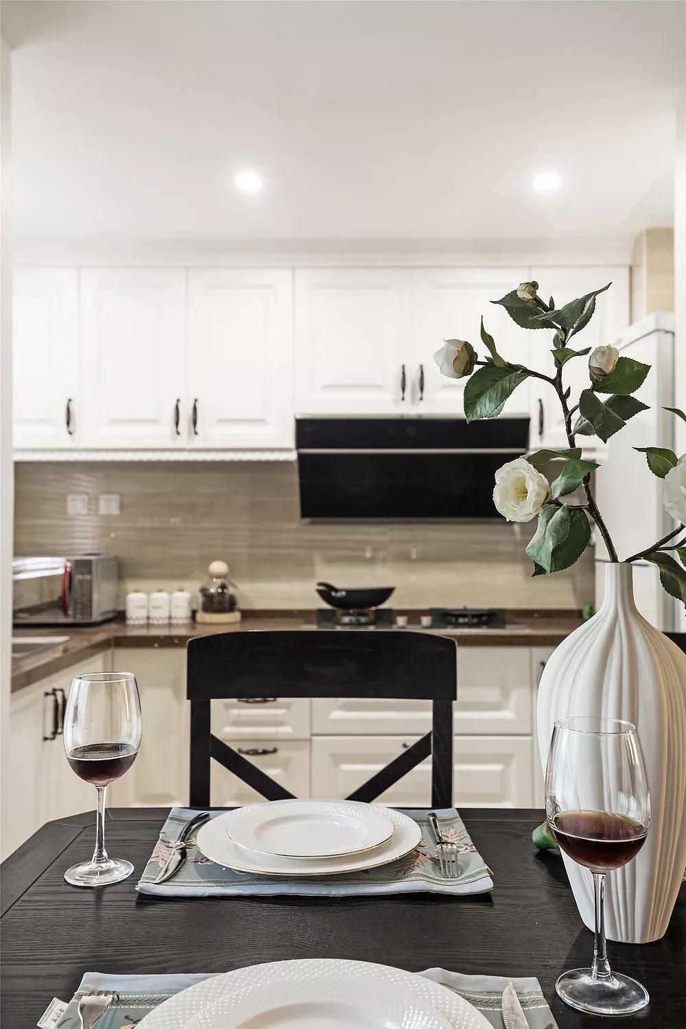 開(kāi)放式的設(shè)計(jì)讓餐廚空間可以充分互動(dòng),在風(fēng)格上也是選用了美式的設(shè)計(jì),做出一個(gè)呼應(yīng)。