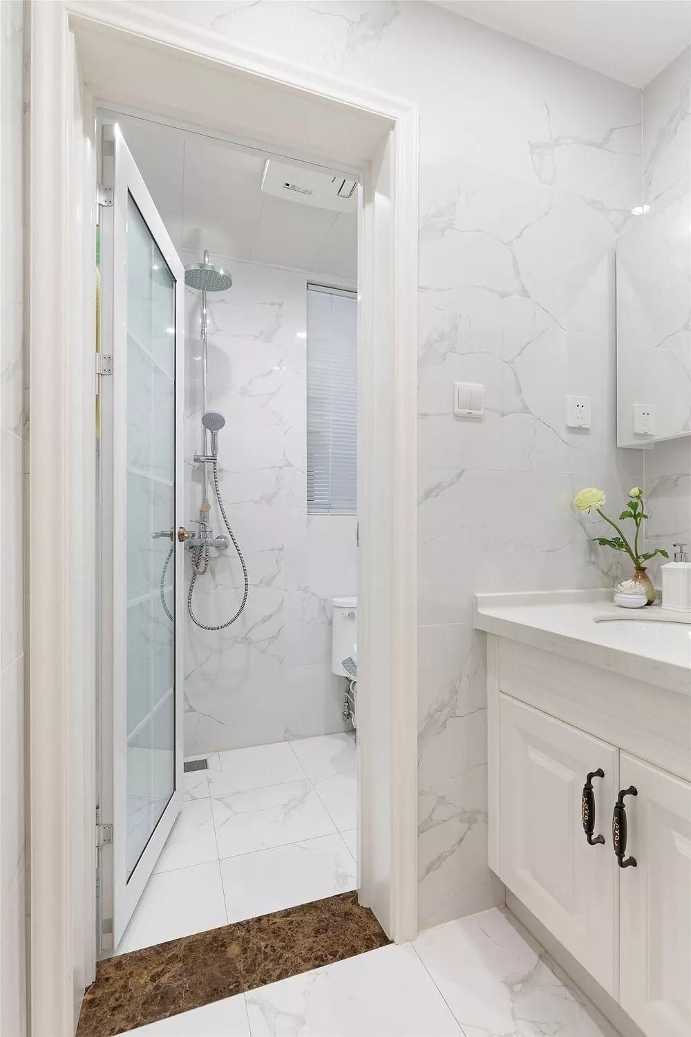 衛(wèi)生間墻地面通鋪大理石紋路的瓷磚,簡(jiǎn)約而清冽。干濕分離的設(shè)計(jì)有效防止水汽散發(fā),提高日常使用效率。