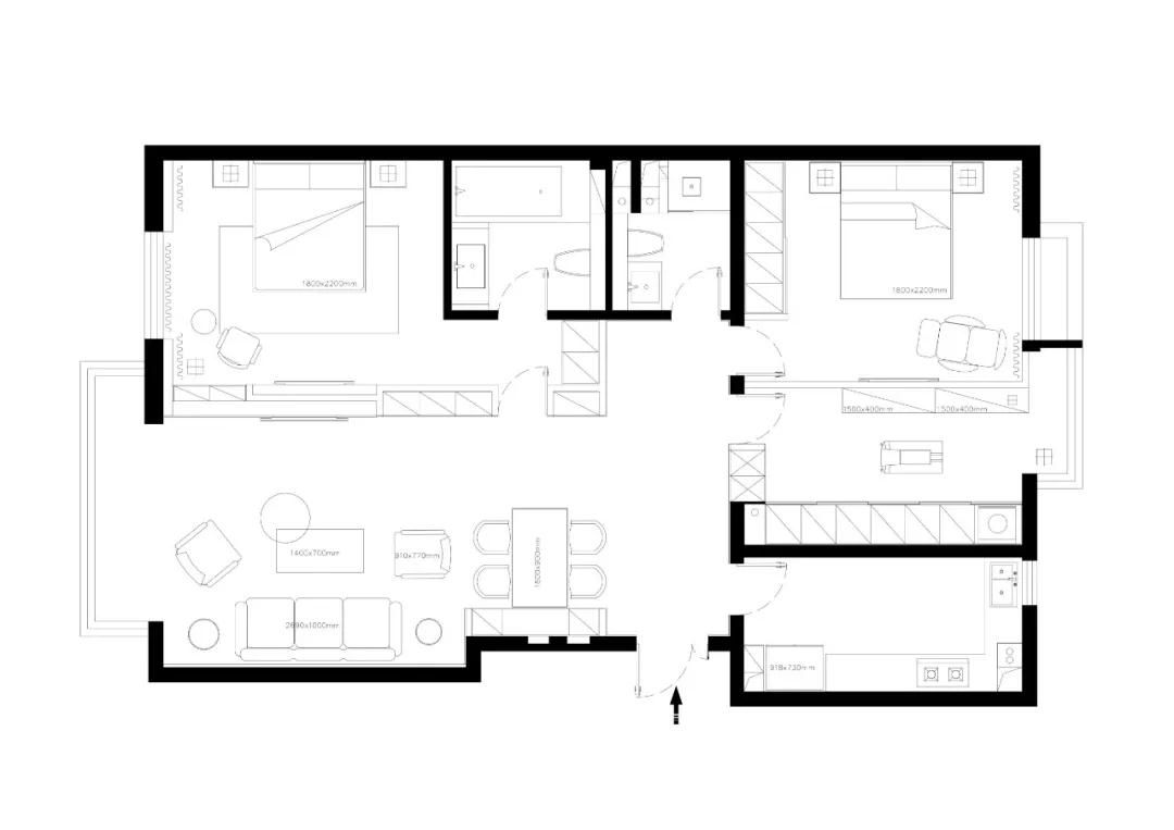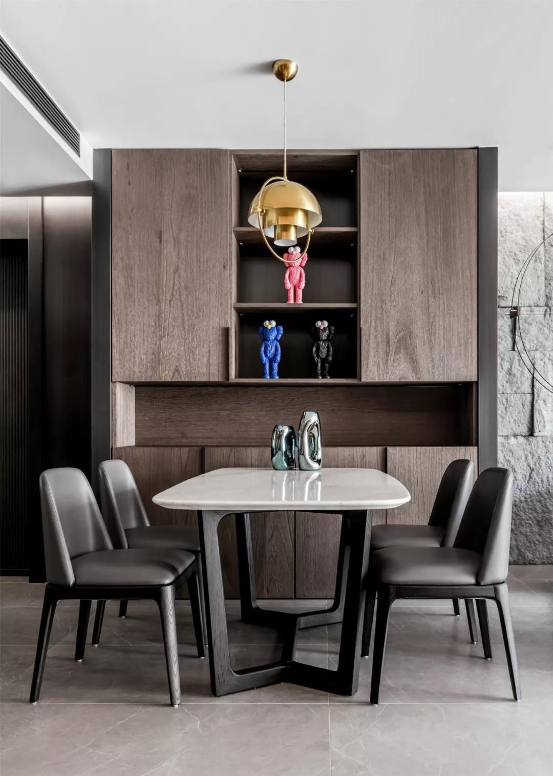 設計師運用開闊的空間設計手法,將餐區(qū),客廳相連,擴大視覺感受,設計出滿足個性化生活需求的流暢動線。