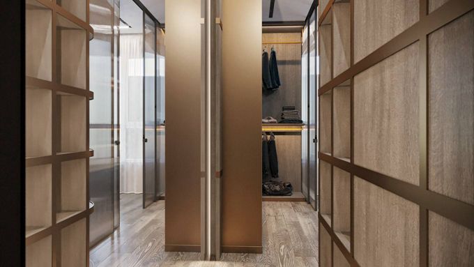 防潮、防霉對(duì)于衣帽間來(lái)說(shuō)也是非常重要的,首先考慮空氣的流通問(wèn)題,避免潮濕季節(jié)發(fā)生蟲(chóng)蛀、發(fā)霉等現(xiàn)象,為達(dá)到這個(gè)目的,如果是單獨(dú)的衣帽間,把門(mén)設(shè)計(jì)成百葉格狀,既可以保持客氣流通,還能節(jié)省空間。
